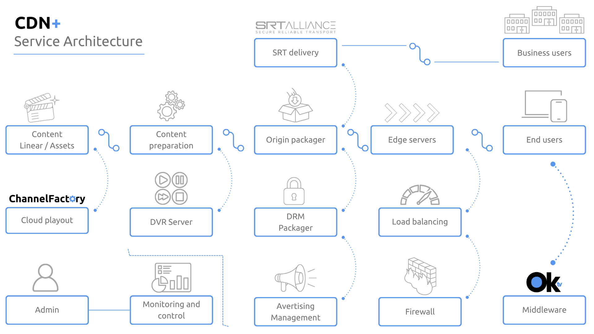 CDN+ is our professional-grade audiovisual content distribution service, meticulously crafted within our advanced cloud ecosystem. Supported by a team of top-tier engineers and robust software platforms, CDN+ ensures unparalleled performance and reliability. Our service features 24/7 monitoring and guarantees a 99.95% availability, allowing us to offer a very attractive Service Level Agreement (SLA). Strategically located in top-rated data centers worldwide, CDN+ offers the best in global content distribution, ensuring your audience experiences the highest quality at all times.