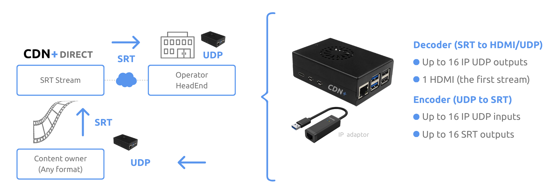 Recognizing the prevalence of readily available HDMI to IP encoders traditionally paired with satellite receivers, the CDN+ Gateway with HDMI and up to 16 UDP/SRT output emerges as the definitive SRT/UDP receiver. This purpose-built device offers a stable, high-quality, and remarkably affordable pathway for operators to embrace the increasing adoption of SRT, the very protocol poised to supersede traditional satellite delivery. By providing a direct HDMI and up to 16 UDP outputs from the SRT stream, CEF Technology simplifies integration and unlocks a new era of efficient and reliable signal reception for Content Owners, TV operators, Hotels and Digital Signage business.